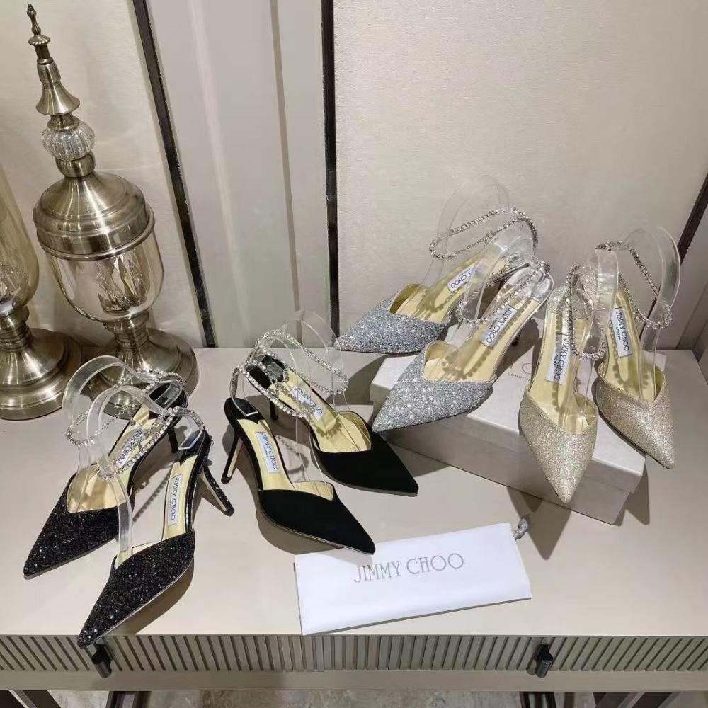 كعب عالي من Jimmy Choo بتفاصيل فاخرة من الشمواه والكريستال