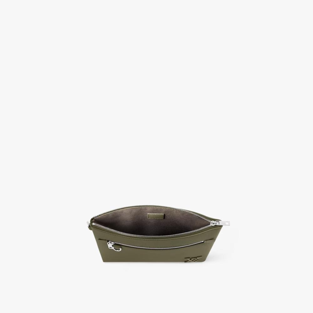 حقيبة Takeoff Pouch من لويس فويتون تأتي بلون كاكي مميز، مصنوعة من جلد LV Aerogram الفاخر. تتميز بتفاصيل معدنية باللون البلاديوم، بما في ذلك السحاب الأمامي، مما يضيف لمسة من الأناقة العصرية. تتمتع بحجم عملي وخفيف الوزن، مما يجعلها مثالية لحمل جهاز لوحي أو احتياجاتك اليومية. تحتوي الحقيبة على مقصورة رئيسية بسحاب مع فتحتين للبطاقات، ويمكن حملها باستخدام حزام المعصم القابل للإزالة أو ككلاتش.