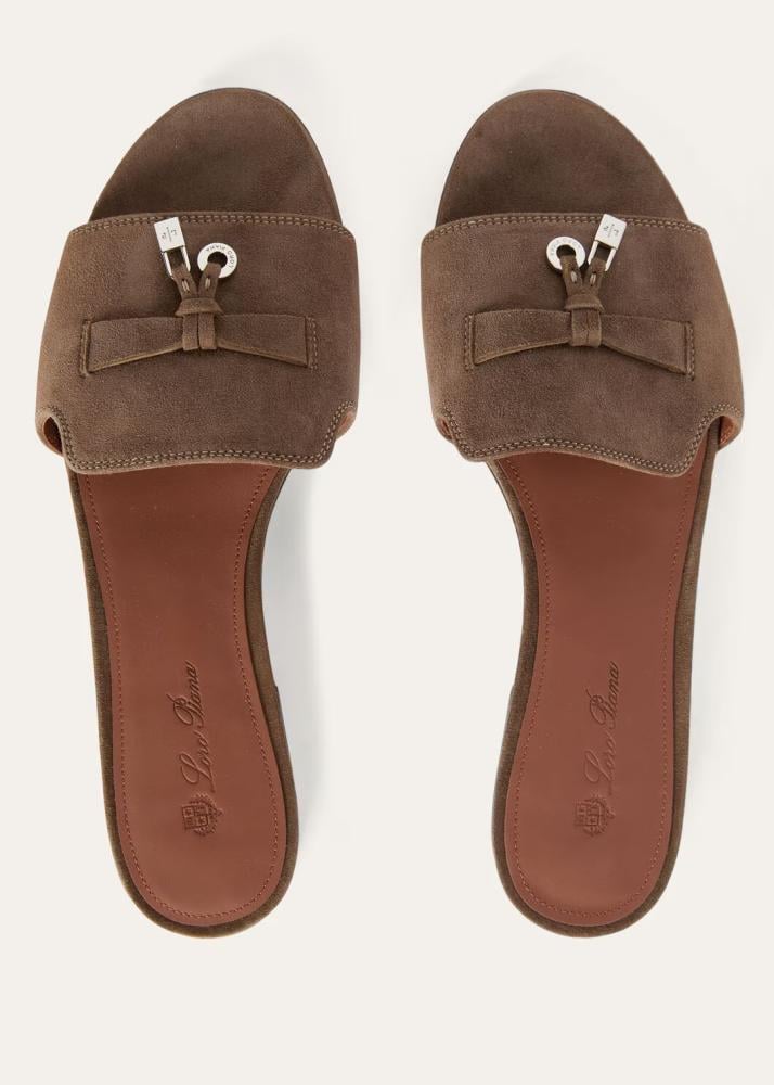 The Summer Charms sandal from Loro Piana is a chic and comfortable summer sandal, perfect for hot days and casual looks. Crafted from premium leather in a warm brown hue, it features beautiful knot detailing and metallic accents that add a touch of luxury. Providing ultimate comfort and classic elegance, this sandal is the perfect choice for all summer occasions.